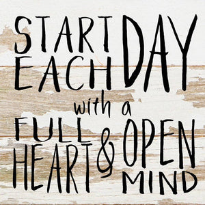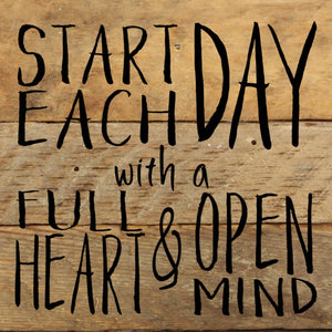 Start each day with a full heart & open mind / 6"x6" Reclaimed Wood Sign
