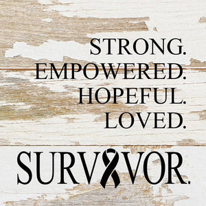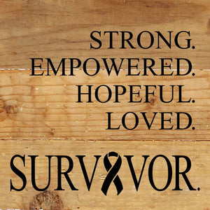 Strong. Empowered. Hopeful. Loved. Survivor (with cancer ribbon) / 6"x6" Reclaimed Wood Sign
