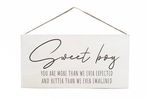 Sweet boy. You are more than we ever expected and better than we ever imagined Wooden Door Hang
