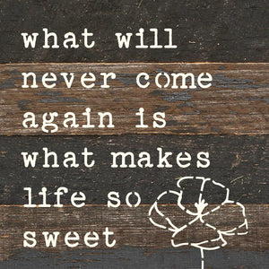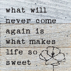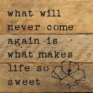 that it will never come again is what makes life so sweet 6x6 Reclaimed Wood Wall Décor. Second Nature by Hand product are Made in the USA by skilled craftsmen in WI. We source distressed reclaimed materials throughout North America that ensures no two Second Nature by Hand