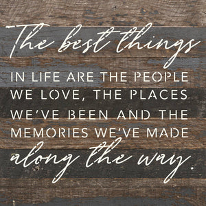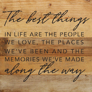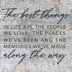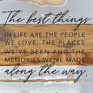 The best things in life are the people we love, the places we've been and the memories we've made along the way 10x10 Reclaimed Wood Wall Décor//10"x10" Reclaimed Wood Sign //Second Nature by Hand product is Made in the USA by skilled craftsmen in WI. We source distressed reclaimed materials throughout North America that ensures no two Second Nature by Hand signs in the world are the same. The wood for this sign may have come from a ship yard, old factory or a huge variety of other sources. Buying reclaimed wood products is good for the environment. Due to the reclaimed nature of this product, colors and wood tones/features may vary slightly.