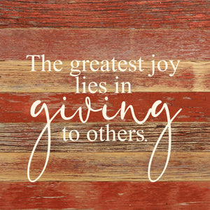 The greatest joy lies in giving to others. / 10"x10" Reclaimed Wood Sign