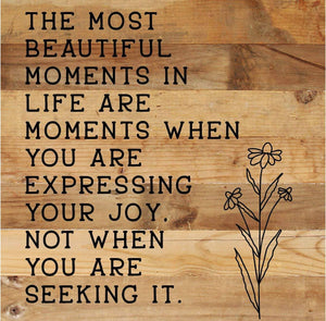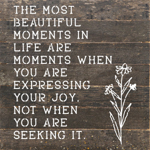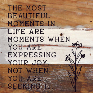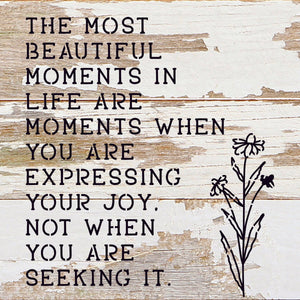 The most beautiful moments in life are when you are expressing your joy. Not when you are seeking it. / 10"X10" Reclaimed Wood Sign