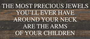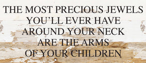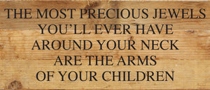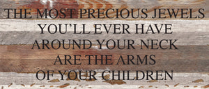 The most precious jewels you'll ever have around your neck are the arms of your children / 14"x6" Reclaimed Wood Sign