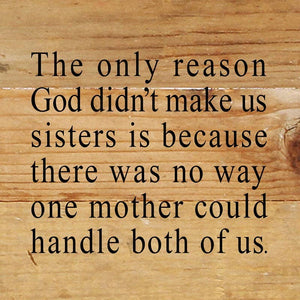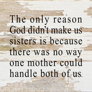 The only reason God didn't make us sisters is because there was no way one mother could handle both of us. / 6"x6" Reclaimed Wood Sign
