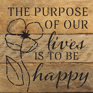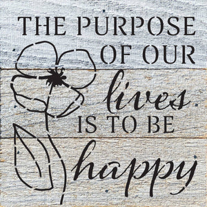 The purpose of our lives is to be happy 6x6 Reclaimed Wood Wall Décor. Second Nature by Hand product are Made in the USA by skilled craftsmen in WI. We source distressed reclaimed materials throughout North America that ensures no two Second Nature by Hand signs in the world are the same. The wood for this sign may have come from a ship yard, old factory or a huge variety of other sources. Buying reclaimed wood products is good for the environment. Due to the reclaimed nature of this product, colors and wood tones/features may vary slightly