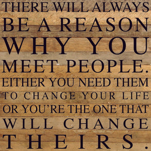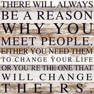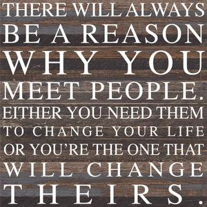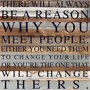There will always be a reason why you meet people. Either you need them to change your life or you're the one that will change theirs / 28"x28" Reclaimed Wood Sign