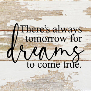There's always tomorrow for dreams to come true. / 6"x6" Reclaimed Wood Sign