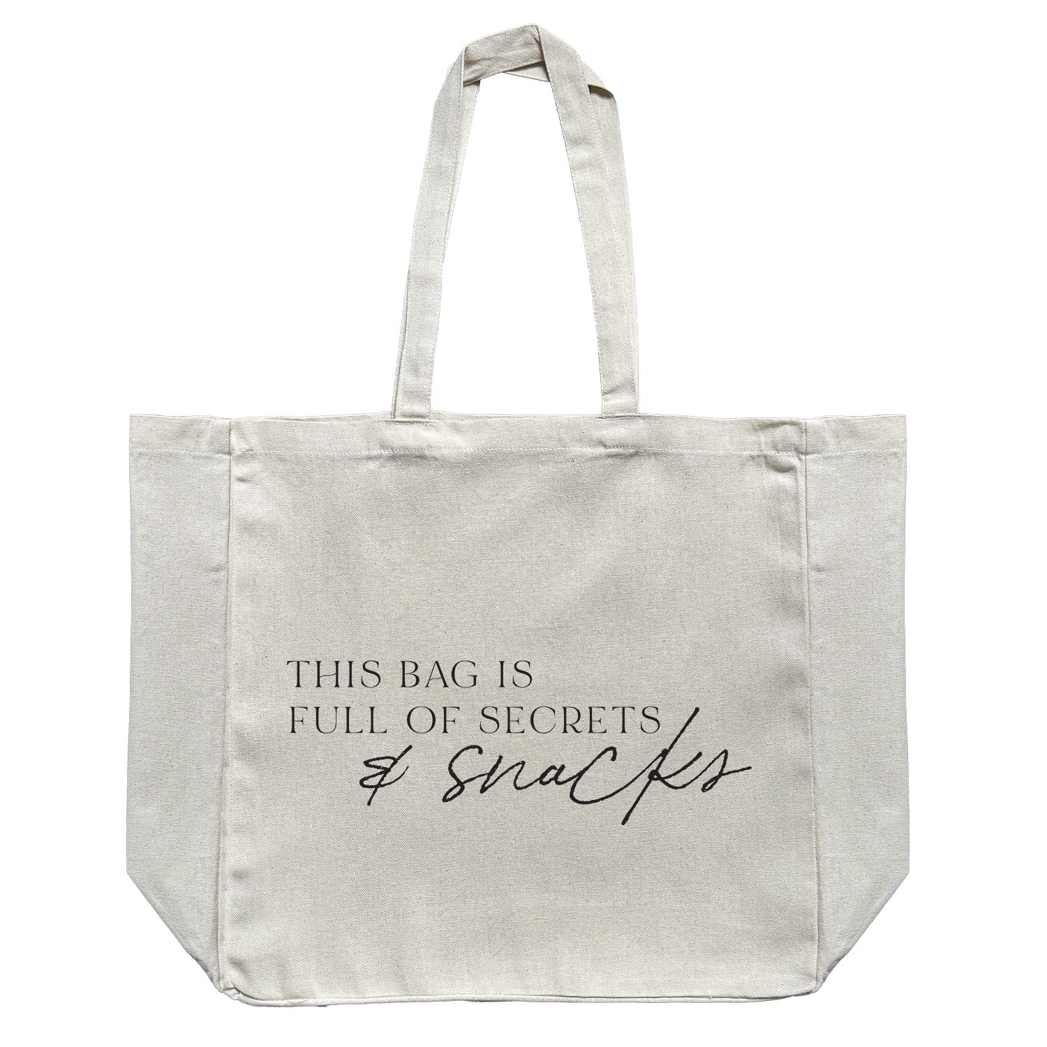 This bag is full of secrets and snacks Large Natural Tote Bag