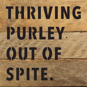 Thriving purely out of spite 6x6 Reclaimed Wood Wall Décor Second Nature by Hand product are Made in the USA by skilled craftsmen in WI. We source distressed reclaimed materials throughout North America that ensures no two Second Nature by Hand signs in the world are the same. The wood for this sign may have come from a ship yard, old factory or a huge variety of other sources. Buying reclaimed wood products is good for the environment. Due to the reclaimed nature of this product, colors and wood tones/features may vary slightly.