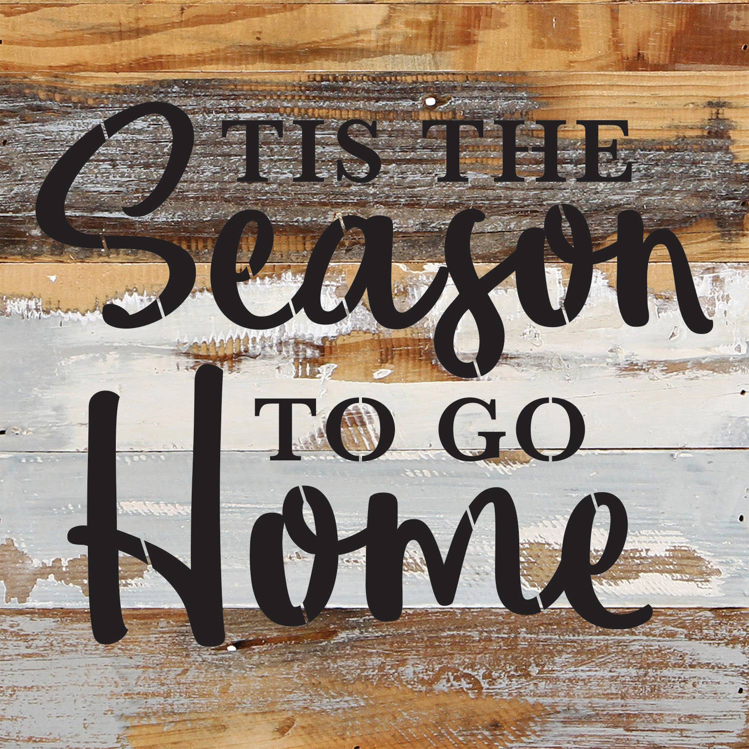 Tis the season to go home 14x14 Reclaimed Wood Wall Décor Christmas Holiday Second Nature by Hand product are Made in the USA by skilled craftsmen in WI. We source distressed reclaimed materials throughout North America that ensures no two Second Nature by Hand signs in the world are the same. The wood for this sign may have come from a ship yard, old factory or a huge variety of other sources. Buying reclaimed wood products is good for the environment. Due to the reclaimed nature of this product, colors and wood tones/features may vary slightly.