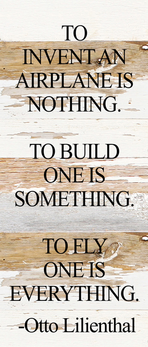 To invent an airplane is nothing. To build one is something. To fly one is everything. -Otto Lilienthal / 6"x14" Reclaimed Wood Sign