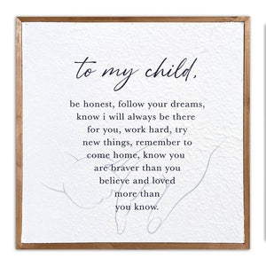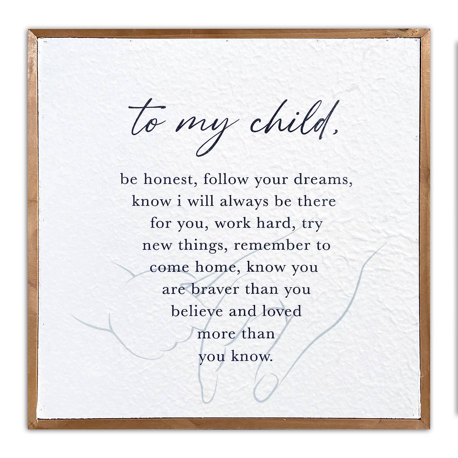 To my child, be honest, follow your dreams, know I will always be there for you, work hard ….14x14 Pulp Paper Wall Décor. Our collection of pulp paper wall decor is made from textured paper that is designed and printed in house in the United States.