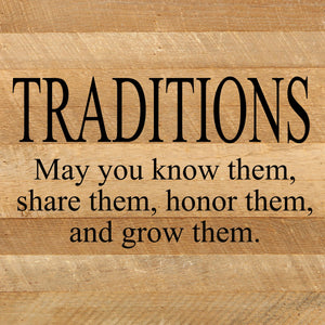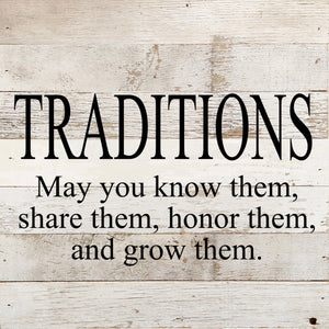 Traditions. May you know them, share them, honor them and grow them. / 10"x10" Reclaimed Wood Sign