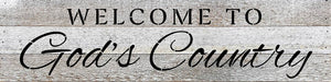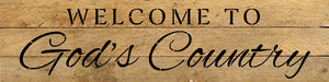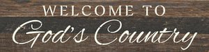 Welcome to God's Country 24x6 Reclaimed Wood Wall DécorSecond Nature by Hand product are Made in the USA by skilled craftsmen in WI. We source distressed reclaimed materials throughout North America that ensures no two Second Nature by Hand signs in the world are the same. The wood for this sign may have come from a ship yard, old factory or a huge variety of other sources. Buying reclaimed wood products is good for the environment. Due to the reclaimed nature of this product, colors and wood tones/features may vary slightly.