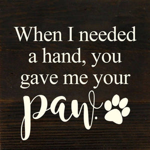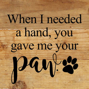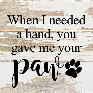 When I needed a hand, you gave me your paw. / 6"x6" Reclaimed Wood Sign