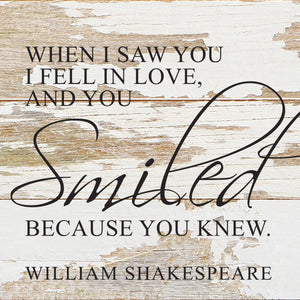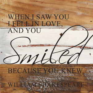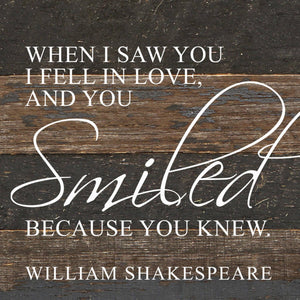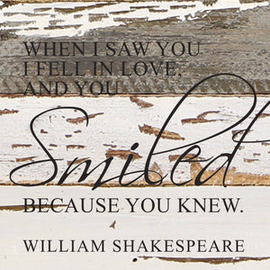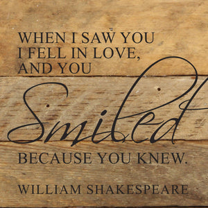 When I saw you I fell in love, and you smiled because you knew. William Shakespeare / 14"x14" Reclaimed Wood Sign