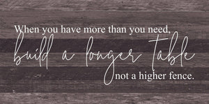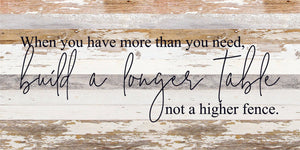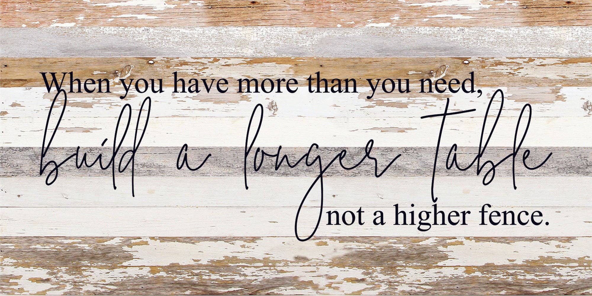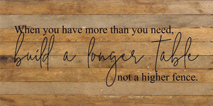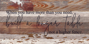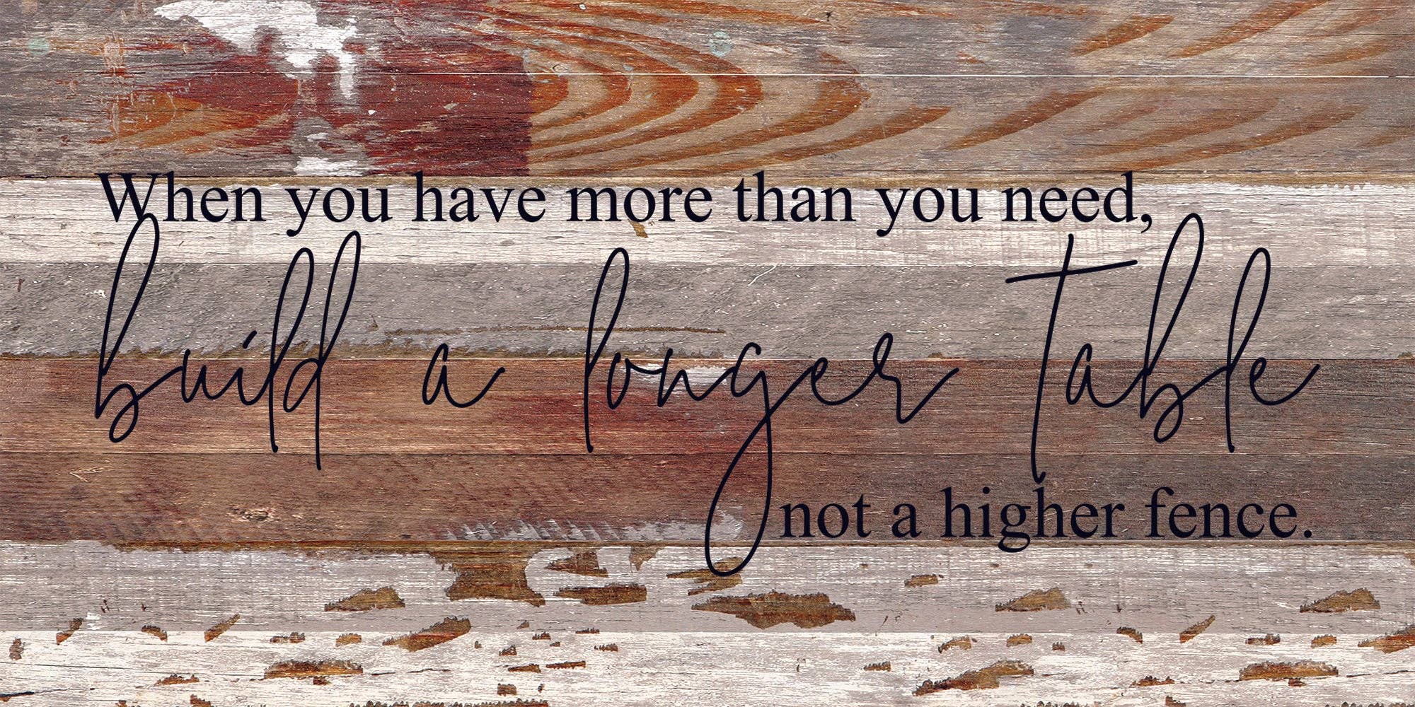 When you have more than you need, build a longer table not a higher fence. / 24"x12" Reclaimed Wood Sign