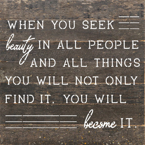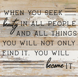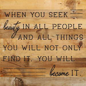 When you seek beauty in all people and all things you will not only find it you will become it / 10"X10" Reclaimed Wood Sign