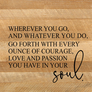 Wherever you go, and whatever you do, go forth with every ounce of courage, love and passion you have in your soul. / 10"x10" Reclaimed Wood Sign