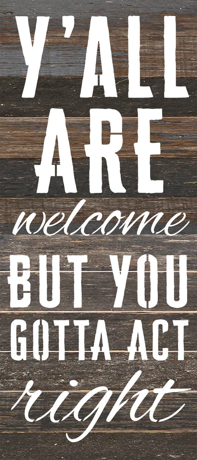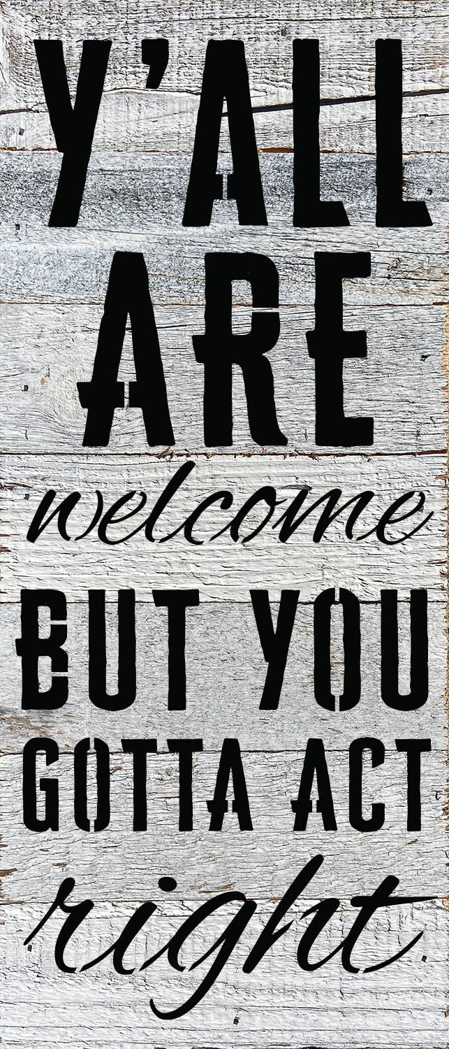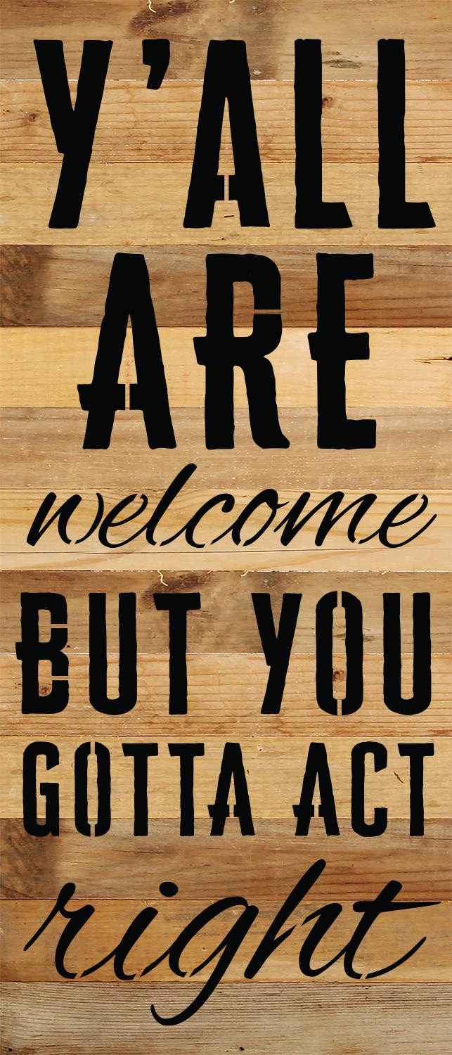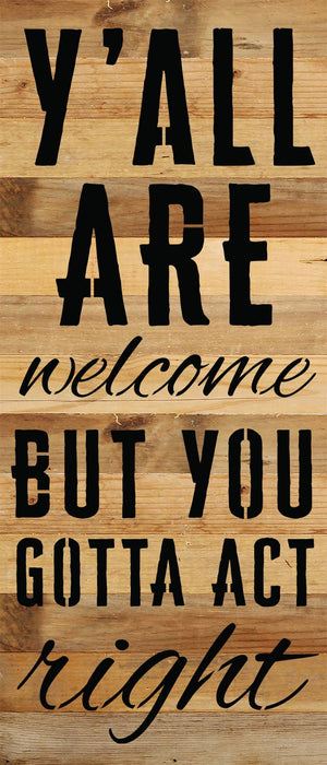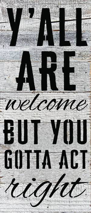 Y'all are welcome but you gotta act right 14x6 Reclaimed Wood Wall Décor