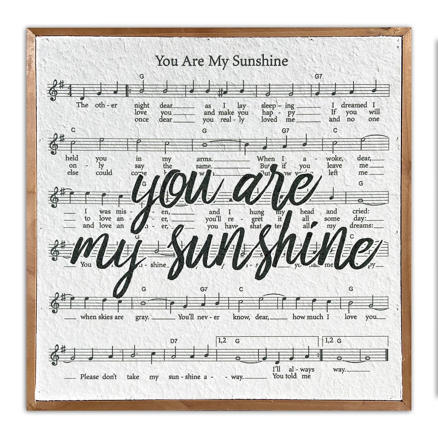 You are my Sunshine Song Lyrics . 14x14 Pulp Paper Wall Décor. Our collection of pulp paper wall decor is made from textured paper that is designed and printed in house in the United States.