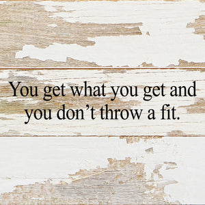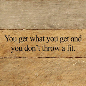 You get what you get and you don't throw a fit. / 6"x6" Reclaimed Wood Sign