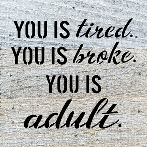 You is tired. You is broke. You is adult. / 6"x6" Wood Sign